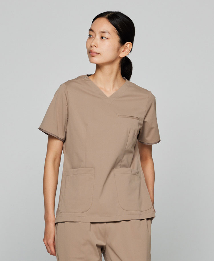 ①レディース:スクラブトップス・FREE/ベージュ