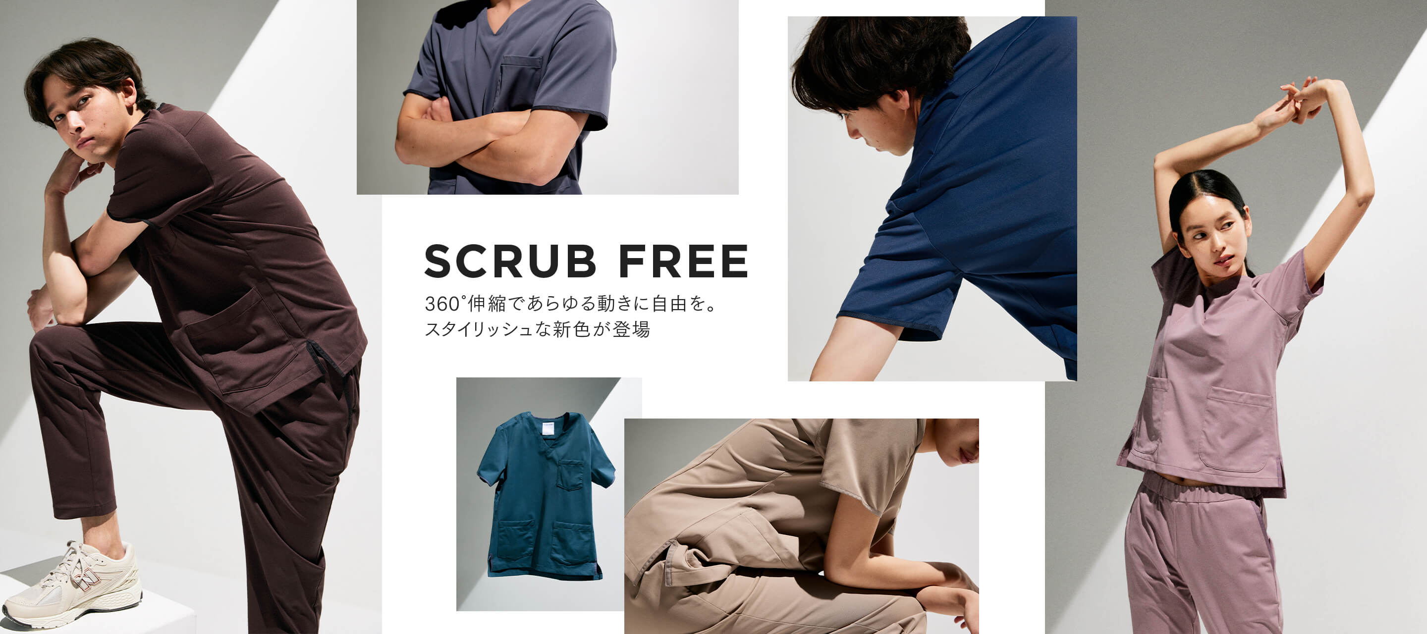 性別や世代を問わず着用しやすいデザインで、初めての一着はもちろん、リピートにも大人気のスクラブです。