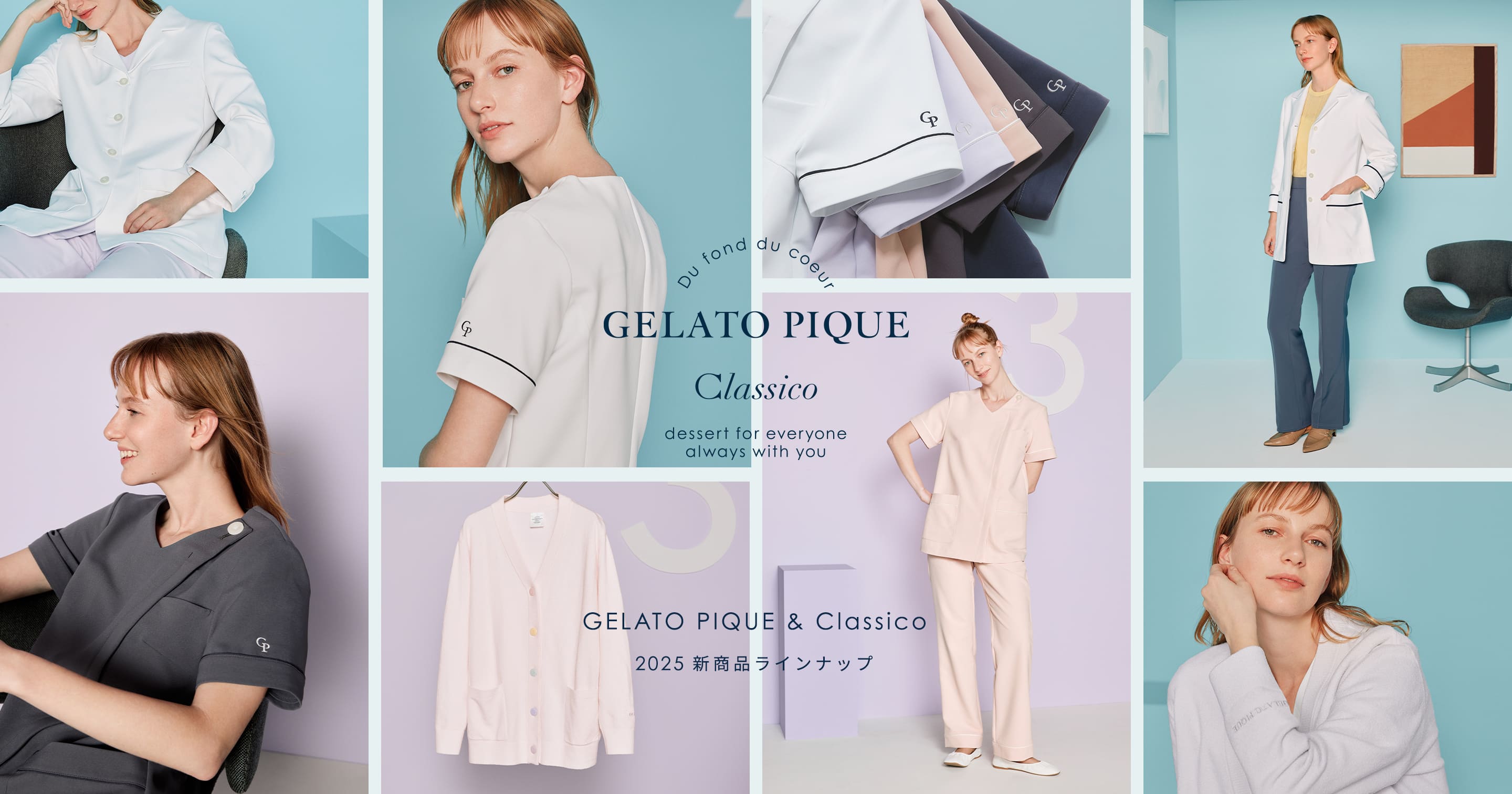 ルームウェアブランド「ジェラート ピケ」とのコラボレーション商品。年代を問わず着用しやすい定番デザインに、優しく柔らかいカラーを落とし込みました。