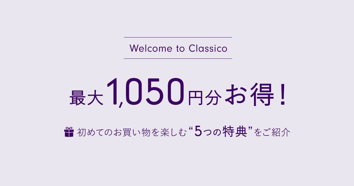 クラシコでお買い物する際に会員登録をしていただくと、初めてのお買い物をお得にお楽しみいただけます。