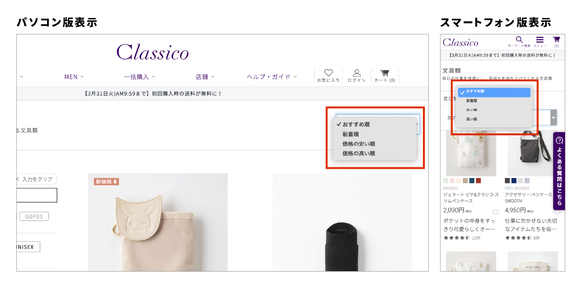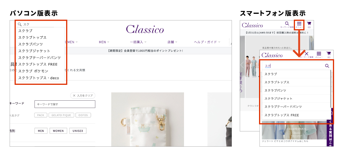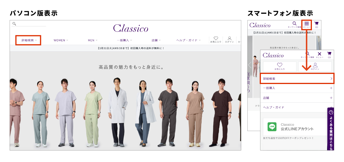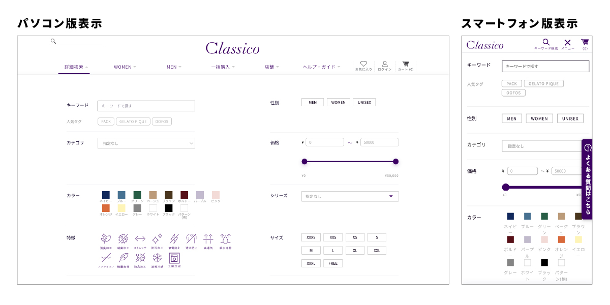 平素よりクラシコをご愛顧いただき、誠にありがとうございます。この度、サイト機能のアップデートにともない商品詳細検索機能が追加され