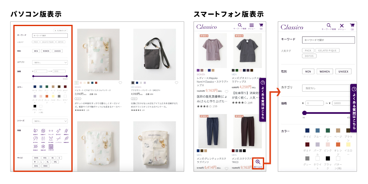 これによりこれまでの検索では絞り込めなかった条件でも、より細かく条件を設定したり、お好みに合わせて商品を探せるようになりました。