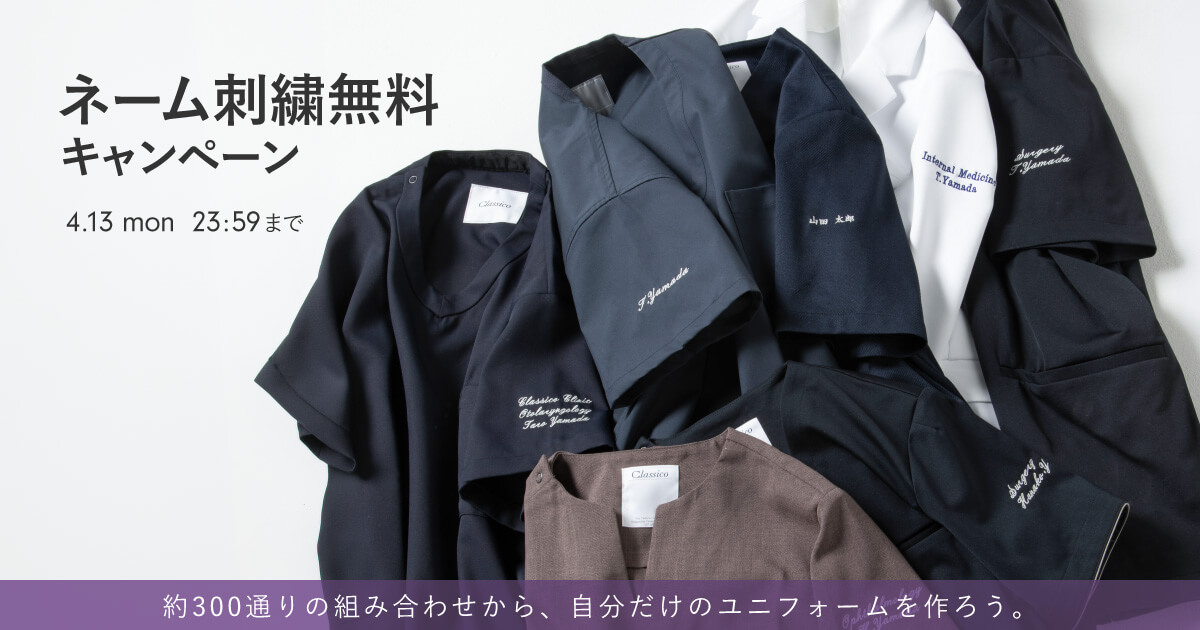 名前の他に病院名や科目名も一緒に入れられるので、自由に組み合わせて愛着のわく一着を仕立てませんか?
