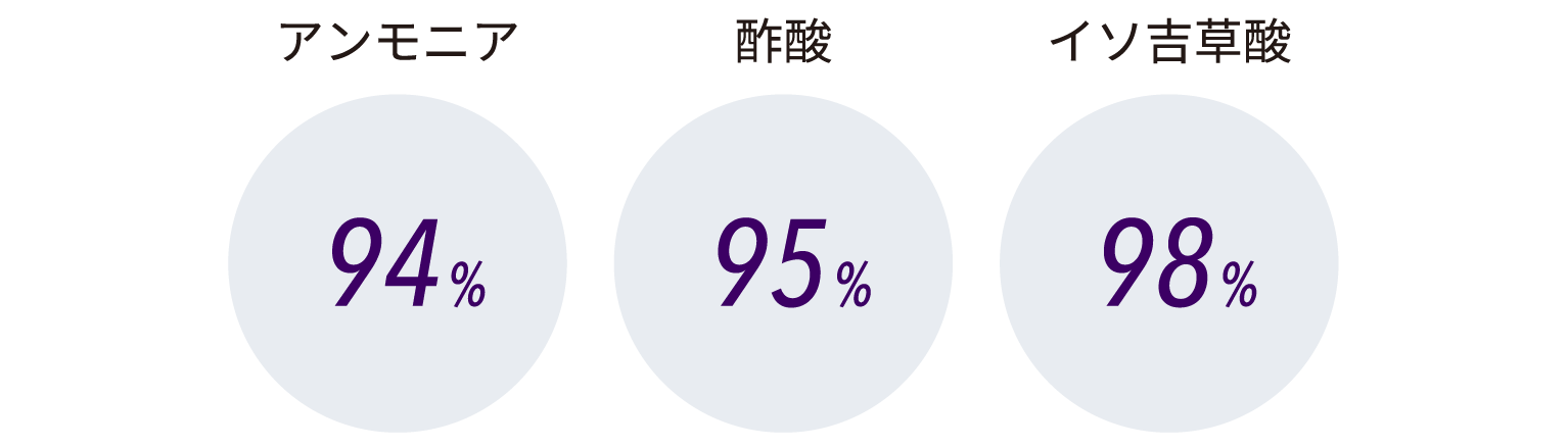 酸性物質も金属塩に吸着されることにより、ニオイを消臭します。