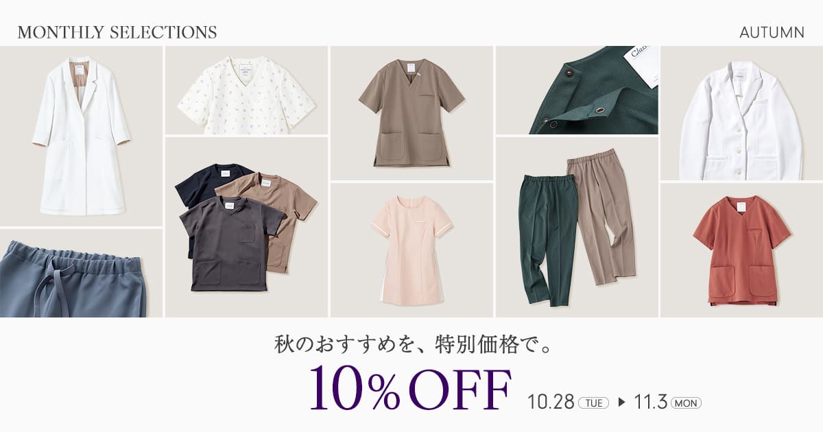 深まる秋に似合う白衣・スクラブを7日間限定で10%OFFにてご提供いたします。