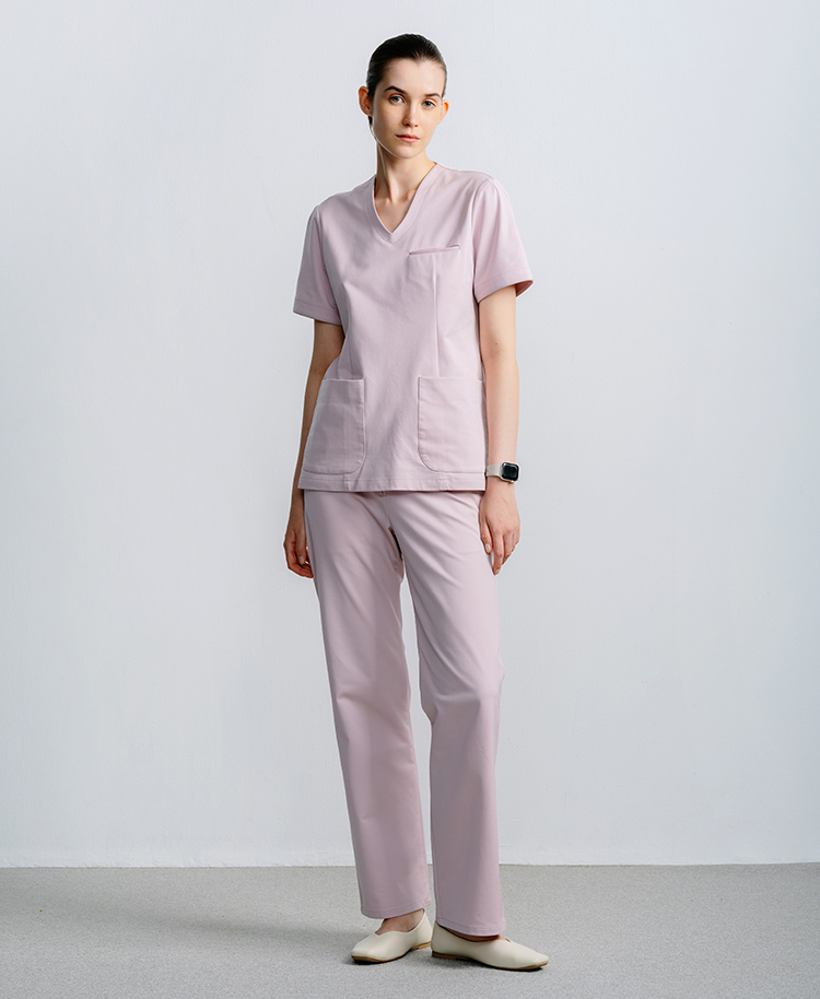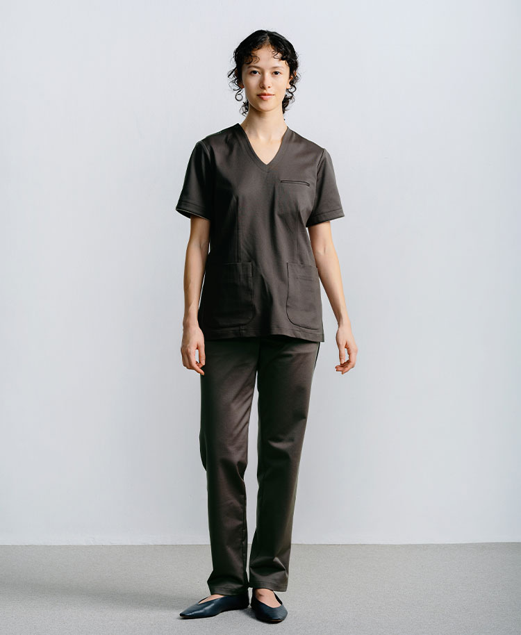 従来の白衣のイメージにある綿(コットン)の着心地はそのままに、クラシコが追求する「機能美」を兼ね備えたシリーズ。 創業当初に誕生し、長年ご愛用いただいているリピーターが多いシリーズのひとつです。 クラシコテーラーならではのパリッとした印象は、医療従事者の権威や信頼感を見た目からサポートします。 綿を含むオリジナルの生地は、吸湿性に優れているのは勿論のこと、ストレッチ性も兼ね備えており、医療現場においても最適です。 長期間の着用でも蒸れにくく、動きも妨げず快適に身体にフィットします。また、綿ならではの優しい肌あたりも特徴です。 今回のリニューアルテーマは「原点回帰」。クラシコのルーツであるテーラリング(より身体に沿った立体的なパターン)とクラシカルな印象を追求しました。 生地の白さにもこだわり、従来品から改良を重ねています。